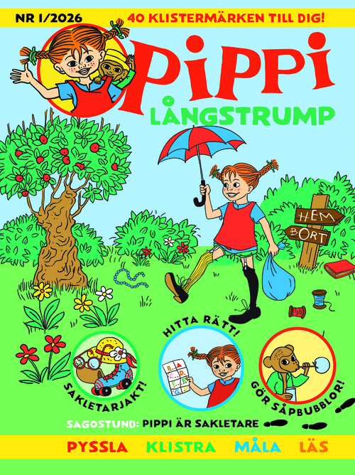 Tidningen Pippi Långstrump innehåller 28 sidor fullmatade med pyssel, lekar, en kort illustrerad saga och roliga övningar som väcker lusten att skriva, läsa och räkna. Klistermärken ingår.600 nr0pippi-langstrump-1-2026.jpg2026-02-24