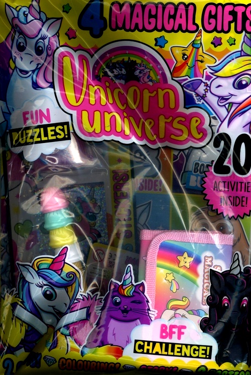 Unicorn Universe (UK) är en magisk tidskrift full av allt som har med enhörningar att göra. Det är en tidskrift som sprider glädje, fantasi och regnbågsglitter.