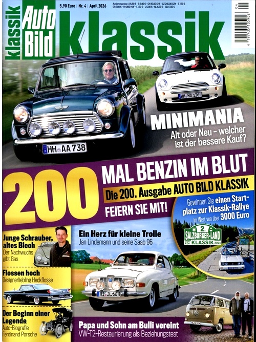 Auto Bild Klassik (DE) är tidningen för dig som älskar klassiska bilar. Den riktar sig till alla som är intresserade av bilhistoria, bilkultur och bilvård, oavsett om de äger en klassiker eller bara drömmer om en.