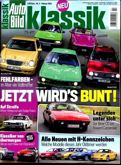 Auto Bild Klassik (DE) är tidningen för dig som älskar klassiska bilar. Den riktar sig till alla som är intresserade av bilhistoria, bilkultur och bilvård, oavsett om de äger en klassiker eller bara drömmer om en.