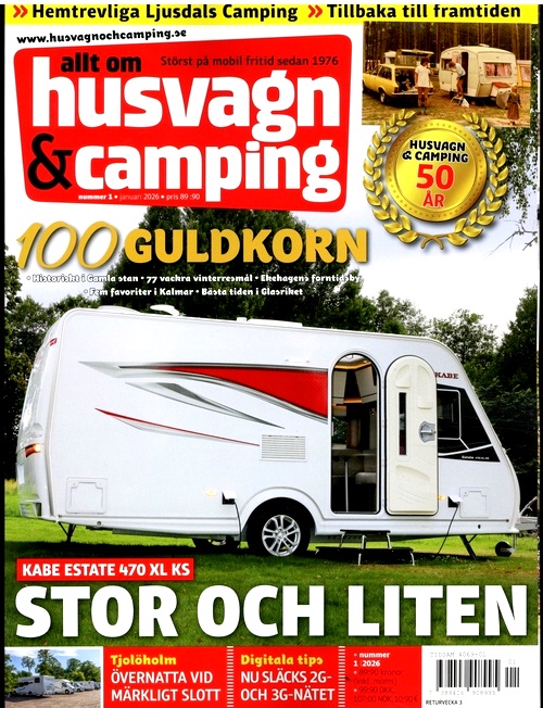 Prenumerera på Husvagn och Camping om du är en inbiten campingfantast, älskar det mobila livet, eller drömmer om att äga en husvagn eller husbil. Tidningen grundades redan år 1976 och är idag Sveriges mest lästa tidskrift om husvagnar och husbilar! I varje nummer av Husvagn och Camping kan du som prenumererar på tidningen ta del av tips om många fantastiska resmål och fina övernattningsplatser till din nästa semester. Dessutom gör tidningen mängder av utförliga tester av de senaste husvagnarna och husbilarna! Prenumerera på Husvagn och Camping för att lära dig allt om det härliga campinglivet!
