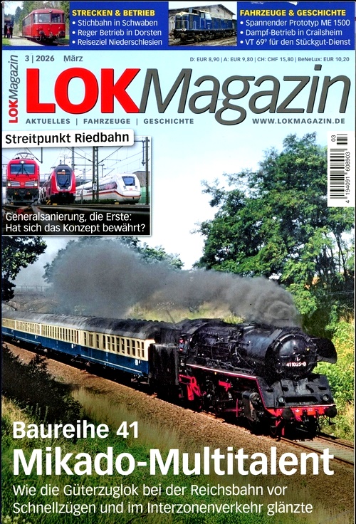 Lok Magazin (DE) är mer än bara en tidning. Det är en upplevelse som tar dig med på en resa genom järnvägens historia, där du får möta de människor som skapade och körde lokomotiven. Beställ din tidning idag, erbjuds som lösnummer och prenumeration!