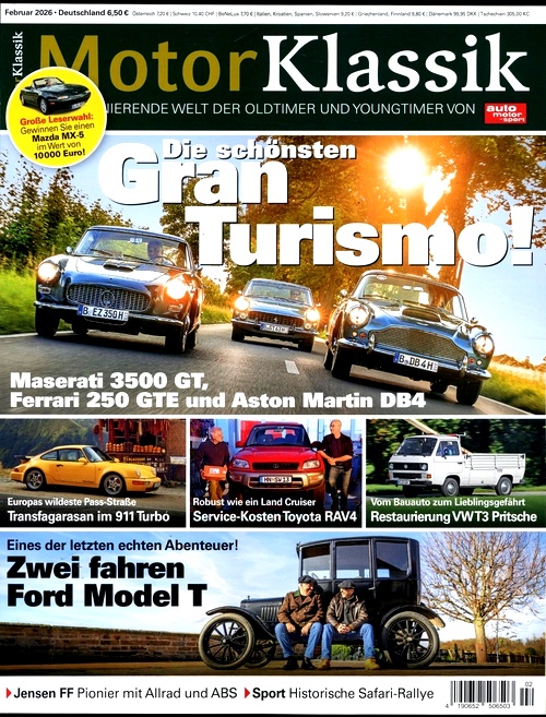 Motor Klassik (DE) är en tidning för alla som älskar gamla bilar. Tidningen berättar om historien, tekniken och kulturen kring oldtimers och youngtimers. Du får läsa om spännande modeller, intressanta personer och fantastiska evenemang. Tidningen ger dig också tips om köp, försäljning, underhåll och restaurering av klassiska bilar. Motor Klassik (DE) är en tidning för dig som vill njuta av bilens gyllene tider.