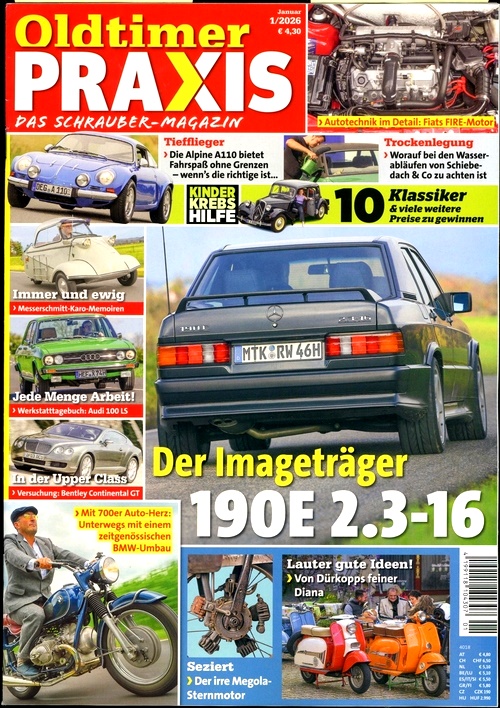 Oldtimer Praxis är en tysk tidning som är specialiserad på gamla bilar och deras restaurering. Den har funnits sedan 1991 och publicerar månatliga utgåvor. Oldtimer Praxis innehåller artiklar, tips, recensioner, nyheter och bilder om olika typer av klassiska bilar, från sportbilar och cabrioleter till lastbilar och traktorer. Oldtimer Praxis är det perfekta magasinet för dig som älskar gamla bilar och vill lära dig mer om deras historia, teknik och skötsel.