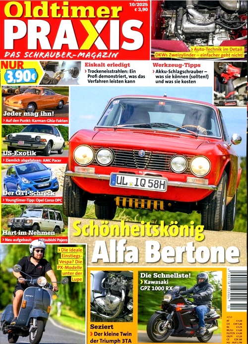 Oldtimer Praxis är en tysk tidning som är specialiserad på gamla bilar och deras restaurering. Den har funnits sedan 1991 och publicerar månatliga utgåvor. Oldtimer Praxis innehåller artiklar, tips, recensioner, nyheter och bilder om olika typer av klassiska bilar, från sportbilar och cabrioleter till lastbilar och traktorer. Oldtimer Praxis är det perfekta magasinet för dig som älskar gamla bilar och vill lära dig mer om deras historia, teknik och skötsel.