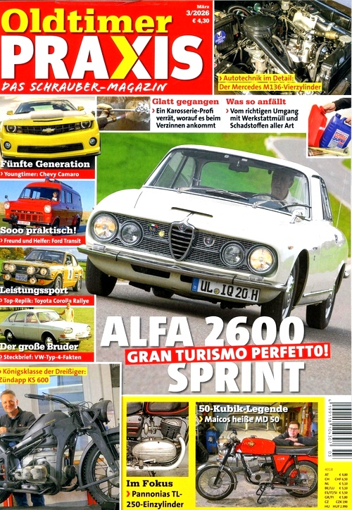 Oldtimer Praxis är en tysk tidning som är specialiserad på gamla bilar och deras restaurering. Den har funnits sedan 1991 och publicerar månatliga utgåvor. Oldtimer Praxis innehåller artiklar, tips, recensioner, nyheter och bilder om olika typer av klassiska bilar, från sportbilar och cabrioleter till lastbilar och traktorer. Oldtimer Praxis är det perfekta magasinet för dig som älskar gamla bilar och vill lära dig mer om deras historia, teknik och skötsel.