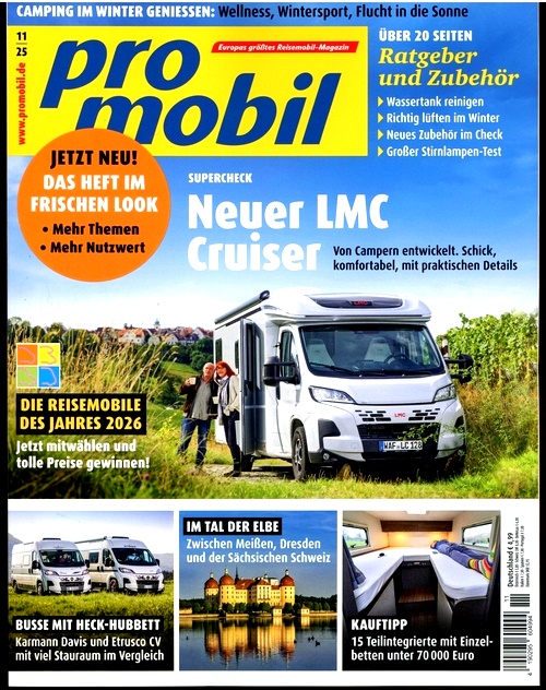 Promobil (DE) är tidningen för dig som är intresserad av husbilar, resor, platser och råd. Snarare än att vara enbart en katalog är deras innehåll aktuellt, smart, praktiskt och relevant för deras läsare, som vill uppleva och njuta av husbils-livet på ett optimalt sätt.
