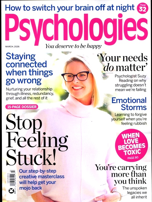 Psychologies (UK) är tidningen för dig som är intresserad av psykologi, personlig utveckling, relationer och välbefinnande. Deras innehåll är aktuellt, smart, roligt och relevant för deras läsare, som vill uppleva och lära sig mer om sig själva och andra.