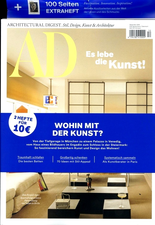 AD - Architectural Digest (DE) är ett tyskt magasin som visar dig det bästa av design, arkitektur och interiör. Tidningen ger dig inspiration och idéer för att skapa ett hem som speglar ens personlighet och stil.