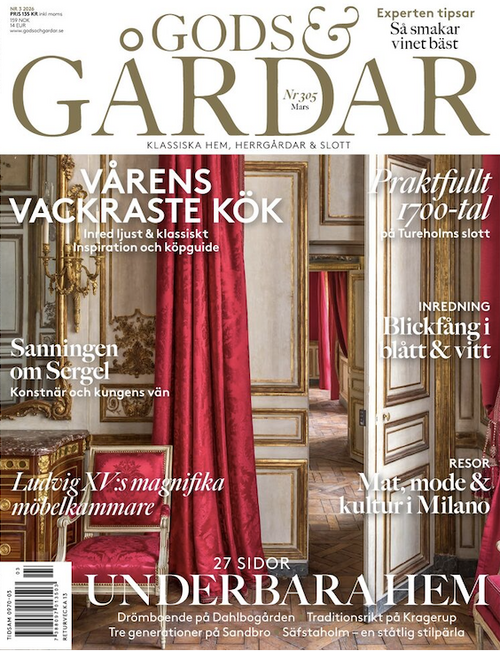 Gods & Gårdar berättar hur man lever ett modernt liv i en oförstörd gammal miljö. Det är en tidning för alla som tycker om vackra miljöer och klassisk stil, historia, antikviteter, byggnadsvård, trädgård, god mat och ädla drycker.2580 nr0gods--gardar-3-2026.png2026-03-17