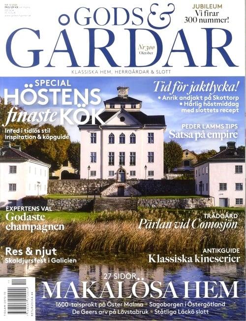 Gods & Gårdar berättar hur man lever ett modernt liv i en oförstörd gammal miljö. Det är en tidning för alla som tycker om vackra miljöer och klassisk stil, historia, antikviteter, byggnadsvård, trädgård, god mat och ädla drycker.1290 nr0gods--gardar-10-2025.jpg2025-09-25