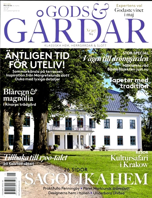 Gods & Gårdar berättar hur man lever ett modernt liv i en oförstörd gammal miljö. Det är en tidning för alla som tycker om vackra miljöer och klassisk stil, historia, antikviteter, byggnadsvård, trädgård, god mat och ädla drycker.2580 nr0gods--gardar-3-2026.png2026-03-17