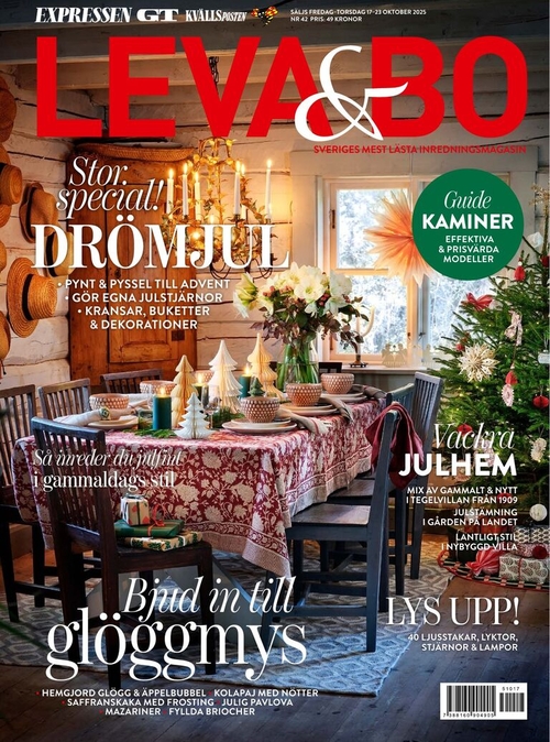 Tidningen LEVA & BO startades år 2000 och ges ut 52 gånger per år på svenska av Expressen. Tidningen har sedan starten varit en succé och en riktig inspirationskälla för alla läsare. Ta chansen och missa inte senaste numret av Leva & Bo, unna dig en prenumeration redan idag!3430 nr0leva--bo-42-2025.jpg2025-10-21