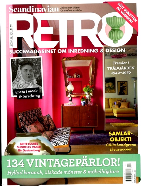 I Scandinavian Retro hittar du utförliga artiklar och inspirerande reportage om inredning och design från 1900-talet. Vi berättar om funkis och 40-talsromantik och den skandinaviska designens guldålder på 50- och 60-talen, och om allt fantastiskt som skapades då: serviser från Gustavsberg, keramik från Rörstrand, tygerna som trycktes i tygriket, möblerna som exporterades över hela världen, bruksföremål som känns lika vackra idag som när de ritades. Våra unika prisguider blandas med hemma hos-reportage, adresser till fyndställen och underbara bilder ur arkiven.
