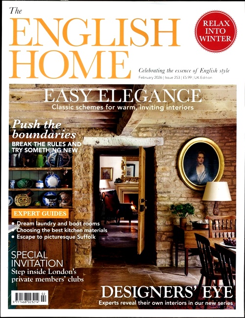 I varje nummer får du tips, råd och inspiration från internationellt erkända designers och experter. Du får också se vackra hem i olika delar av England, från stora herrgårdar till charmiga stugor, från eleganta lägenheter till lantliga gårdar. Oavsett om du vill förnya ditt hem med färg, mönster och textilier, uppskatta de brittiska traditionerna och hantverket eller arrangera säsongens fester och bjudningar, är English Home (b.homes) (UK) tidningen för dig.