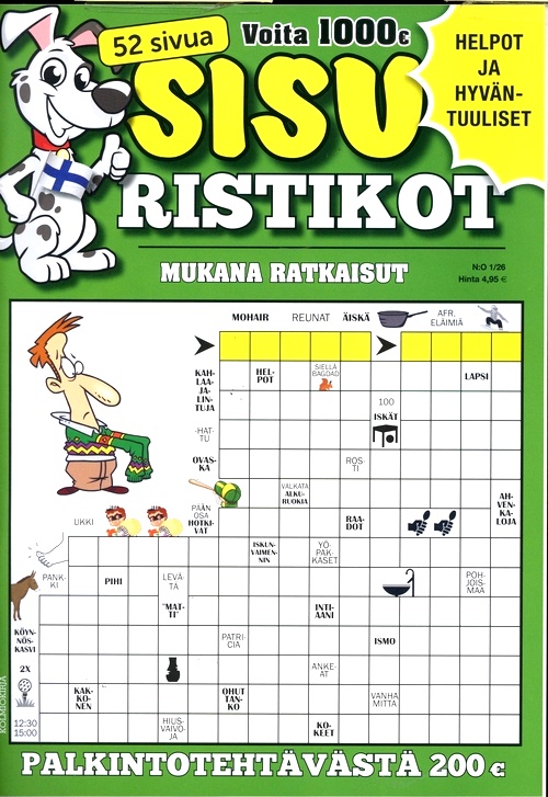 Hyväntuulen Ristikot är tidningen för dig som gillar att lösa lätta och roliga korsord på finska. I varje nummer får du 64 sidor med olika typer av korsord, som bildkorsord, ordkorsord och sanahaut (ordletning). Du kan ha kul med korsorden som har humoristiska och aktuella frågor och svar.