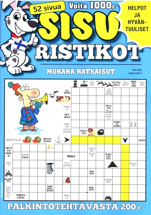 Hyväntuulen Ristikot är tidningen för dig som gillar att lösa lätta och roliga korsord på finska. I varje nummer får du 64 sidor med olika typer av korsord, som bildkorsord, ordkorsord och sanahaut (ordletning). Du kan ha kul med korsorden som har humoristiska och aktuella frågor och svar.
