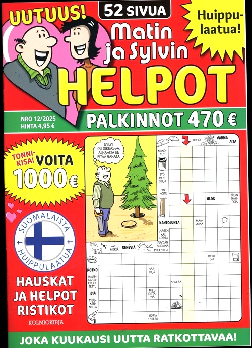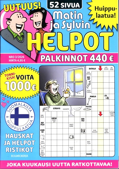 Matin Helpot Ristikot är tidningen för dig som gillar att lösa lätta och roliga korsord på finska. I varje nummer får du 64 sidor med olika typer av korsord, som bildkorsord, ordkorsord och temakorsord. Du kan ha kul med korsorden som har humoristiska och aktuella frågor och svar.