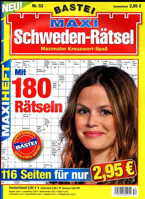 Maxi Schweden Rätsel (DE) är en tysk tidning som ger dig utmanande och roliga korsord på svenskt vis. Du får lösa korsord med bokstäver och ord i stället för siffror och symboler. Du får också träna din logik, ordförråd och kunskap om olika ämnen. Maxi Schweden Rätsel (DE) är en tidning för dig som gillar att klura och ha kul.