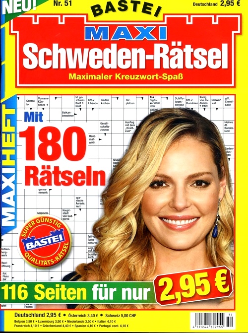Maxi Schweden Rätsel (DE) är en tysk tidning som ger dig utmanande och roliga korsord på svenskt vis. Du får lösa korsord med bokstäver och ord i stället för siffror och symboler. Du får också träna din logik, ordförråd och kunskap om olika ämnen. Maxi Schweden Rätsel (DE) är en tidning för dig som gillar att klura och ha kul.