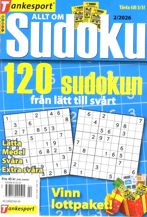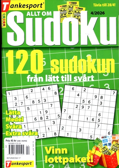 Allt om Sudoku riktar sig till dig som vill hålla igång hjärnan. Varje tidning innehåller 120 olika svåra sudokun. Kört fast? Lugn, alla lösningar finns längst bak i tidningen. Du har också möjlighet att vara med och tävla om fina priser. Formatet är litet och lätt att ta med. Passar utmärkt på resan eller på bussen till jobbet.