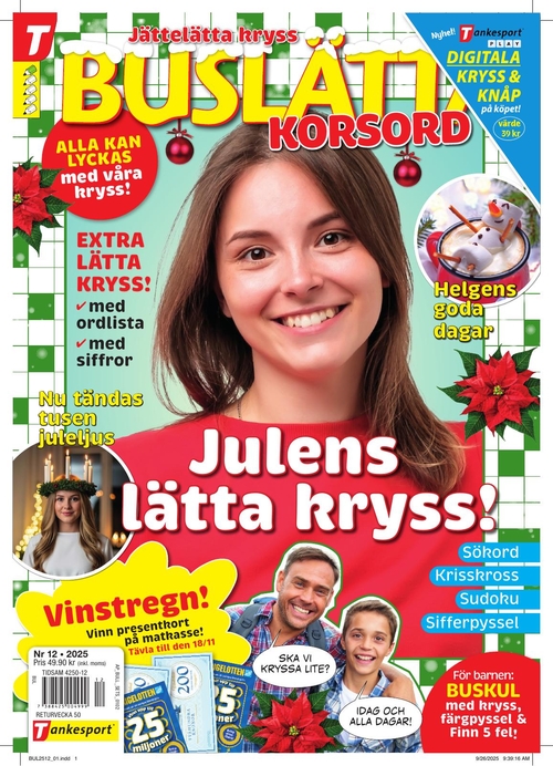 Svårighetsgrad 1 penna Rekommenderad ålder är från 10 år och uppåt, så detta är verkligen tidningen för dig som söker efter en bra aktivitet där du kan inkludera dina barn. Den här tidskriften rekommenderas även för dig som vill utvecklas och lära dig nya svenska ord.500 nr0buslatta-korsord-8-2025.jpg2025-11-04