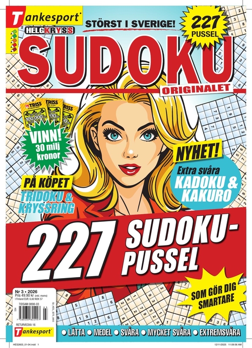 Helgkryss Sudoku – Tidningen för dig som gillar riktigt utmanande sifferpussel. Här hittar du allt från vanliga sudokun till megamastodonter, kaduko och kakuro. Sifferpyssel på mästarnivå, helt enkelt.