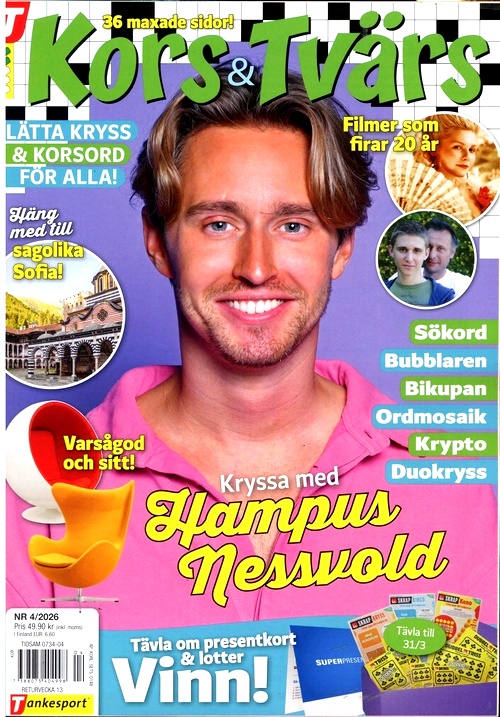 Kors & Tvärs är en populär och lekfull krysstidning med lättsamma inslag som passar för alla åldrar. Här får du en skön blandning av bildkryss, korsord, sudokun och pyssel. Inslagen handlar om allt från Melodifestivalen till spännande resmål.