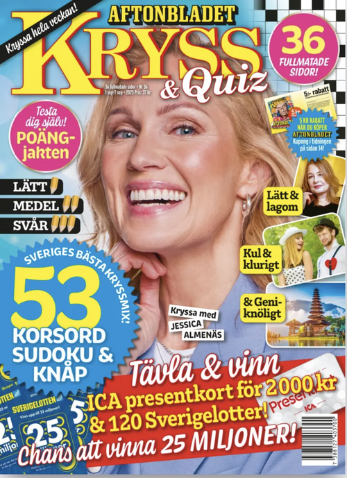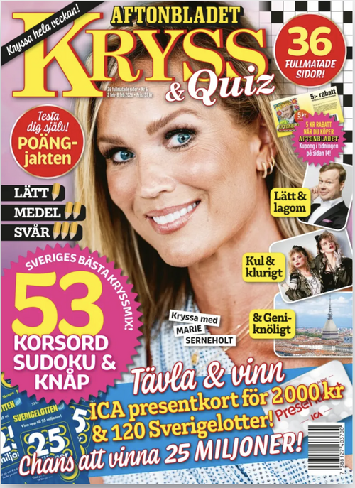 Är du på jakt efter en gåva till någon som står dig nära och som älskar att utmana sig själv med hjälp av korsord, quiz och sudoku? Sluta leta och beställ din prenumeration redan idag. Varje gång tidningen dimper ned i brevlådan infinner sig ivern att få sätta igång. Varmt välkommen som prenumerant på den sprillans nya tidningen Kryss & Quiz!