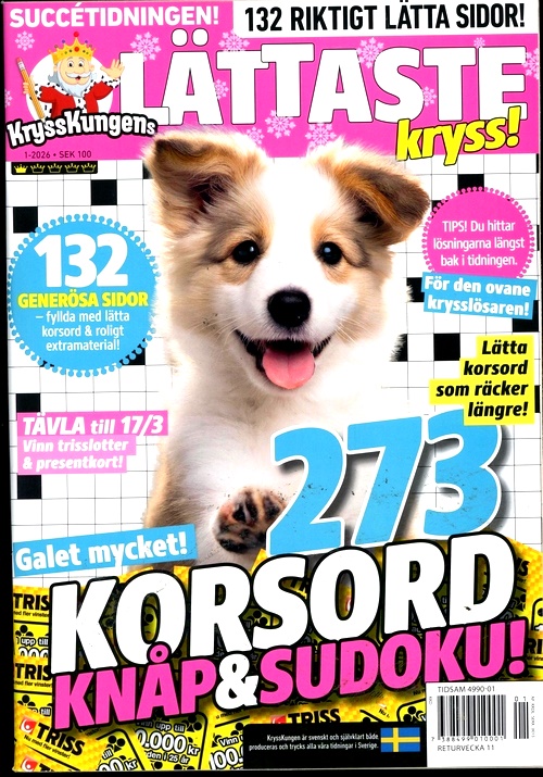 https://www.tidningskungen.se/korsord/krysskungens-lattaste14576Krysskungens Lättaste//bilder.tidningskungen.se/upl/thumb380x500/4990-1-2023.jpg100SEKInStockKorsordKryssKungens LÄTTASTE Kryss Att konstruera riktigt lätta korsord är ett hantverk och en utmaning för de flesta och oftast en betydligt knepigare uppgift än att göra svårare kryss. Våra korsordsmakare är specialister på just det och det är inte konstigt att LÄTTASTE, med sina 132 välfyllda sidor, har blivit så oerhört populär och uppskattad bland de mer ovana krysslösarna. Skulle du, mot förmodan, köra fast så hittar du alltid lösningarna på samtliga korsord, förutom våra tävlingskryss, längst bak i tidningen. 1000 nr04990-1-2023.jpg2023-01-31