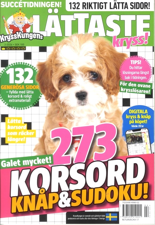 https://www.tidningskungen.se/korsord/krysskungens-lattaste14576Krysskungens Lättaste//bilder.tidningskungen.se/upl/thumb380x500/4990-1-2023.jpg100SEKInStockKorsordKryssKungens LÄTTASTE Kryss Att konstruera riktigt lätta korsord är ett hantverk och en utmaning för de flesta och oftast en betydligt knepigare uppgift än att göra svårare kryss. Våra korsordsmakare är specialister på just det och det är inte konstigt att LÄTTASTE, med sina 132 välfyllda sidor, har blivit så oerhört populär och uppskattad bland de mer ovana krysslösarna. Skulle du, mot förmodan, köra fast så hittar du alltid lösningarna på samtliga korsord, förutom våra tävlingskryss, längst bak i tidningen. 1000 nr04990-1-2023.jpg2023-01-31