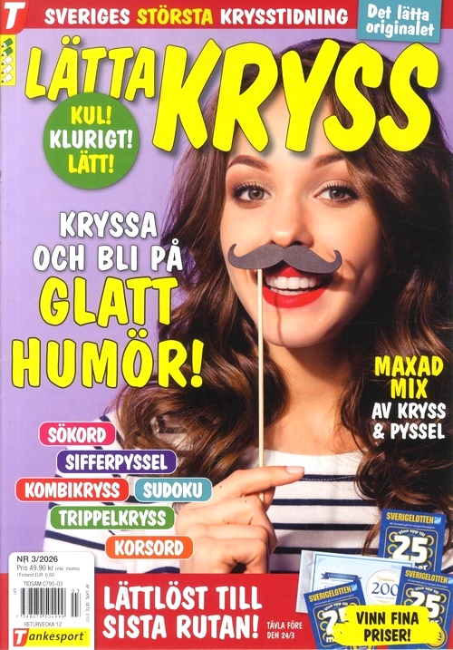 Lätta kryss bjuder på en härlig blandning av lätta och medelsvåra korsord med roliga och lite underfundiga bilder. Lätta kryss ger dig välbehövlig avkoppling och glad underhållning varje månad med många fina priser i potten. På köpet får du nyttig hjärngympa!