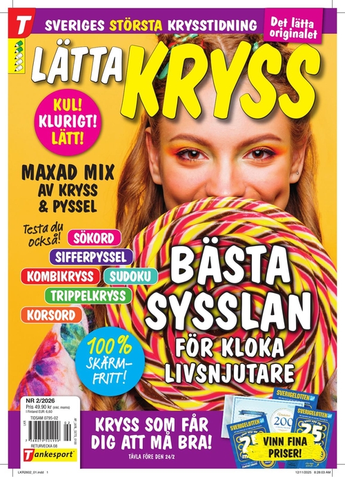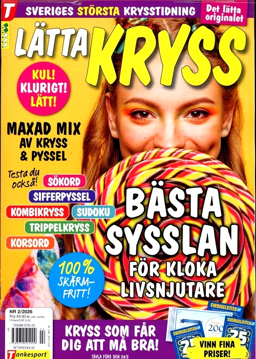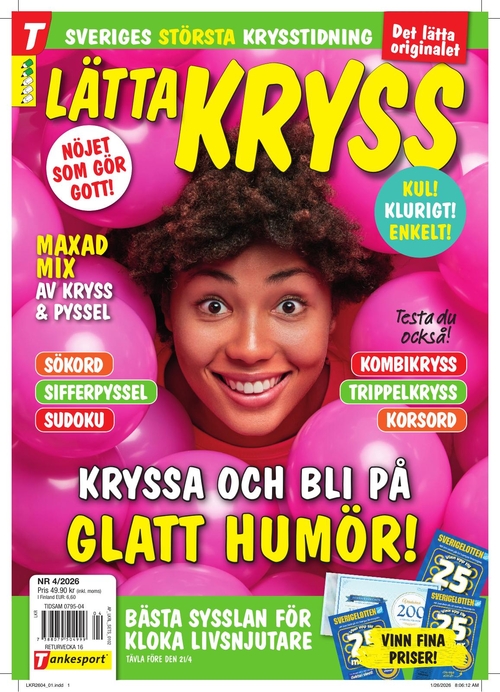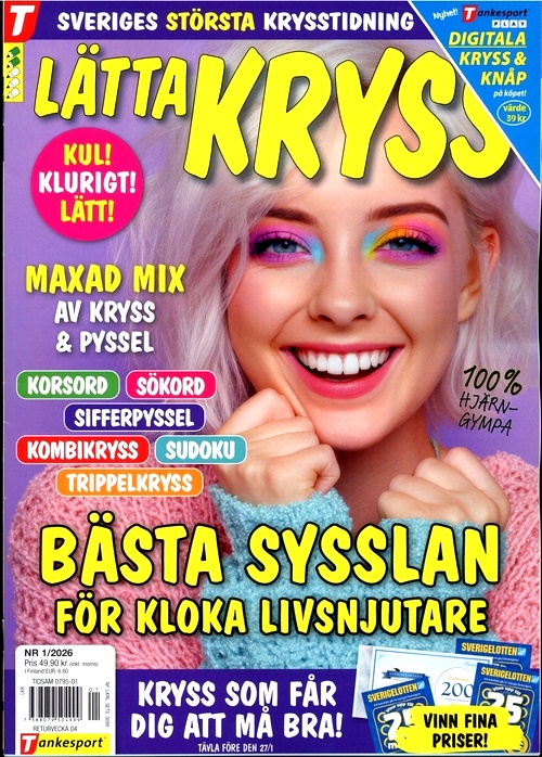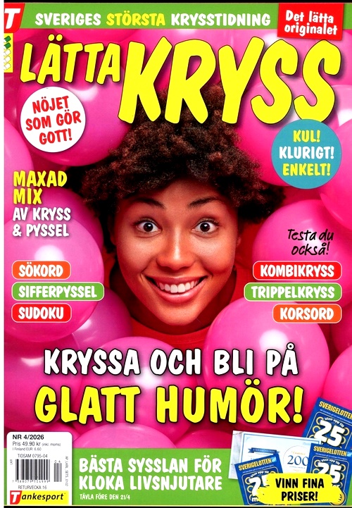 Lätta kryss bjuder på en härlig blandning av lätta och medelsvåra korsord med roliga och lite underfundiga bilder. Lätta kryss ger dig välbehövlig avkoppling och glad underhållning varje månad med många fina priser i potten. På köpet får du nyttig hjärngympa!