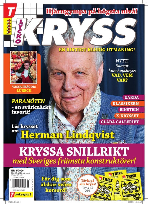 Lycko-Kryss är oslagbar för dig som vill ha något att bita i. Här har vi samlat de allra vass-aste konstruktörerna som bjuder dig på de bästa och klurigaste kryssen, korsorden och ordlekarna. I varje nummer också en special-skriven språkspalt. Svårighetsgrad:4 pennor