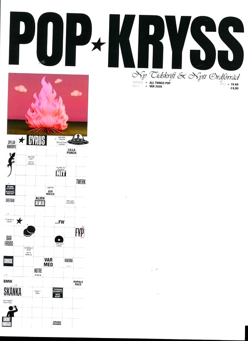 Den nya generationens korsordstidning Pop-Kryss är det självklara valet för unga vuxna som vill ha skärmfri tid. Med kluriga ordlekar, popkulturella referenser och en modern layout levererar tidningen ett helt unikt uttryck. Tillsammans med skaparen av den finska dundersuccétidningen Pop Ristikot blandar Pop-Kryss trender, musik, film, spel och aktuella namn i smarta och lättillgängliga kryss som gör det enkelt att koppla av, tänka till och ha kul. Oavsett om du vill ta paus från mobilspel, ändlöst scrollande eller bara ha något mysigt i handen vid bryggan eller brasan, är Pop-Kryss tidningen för dig.