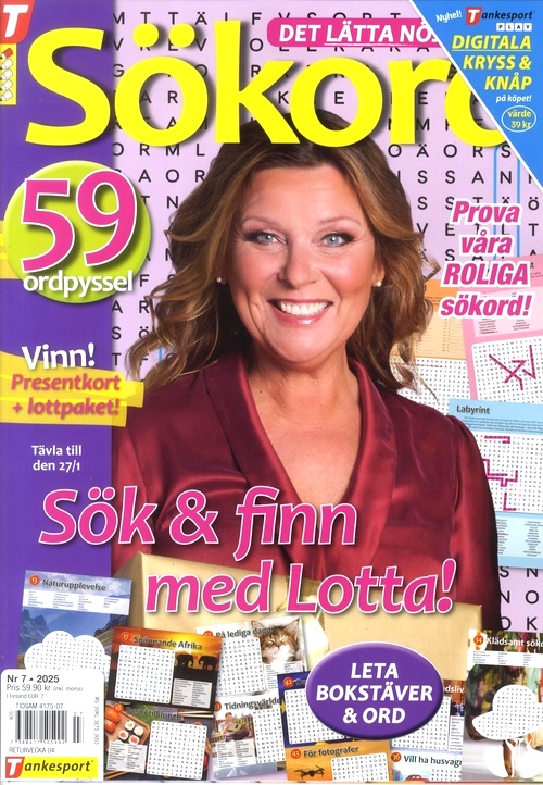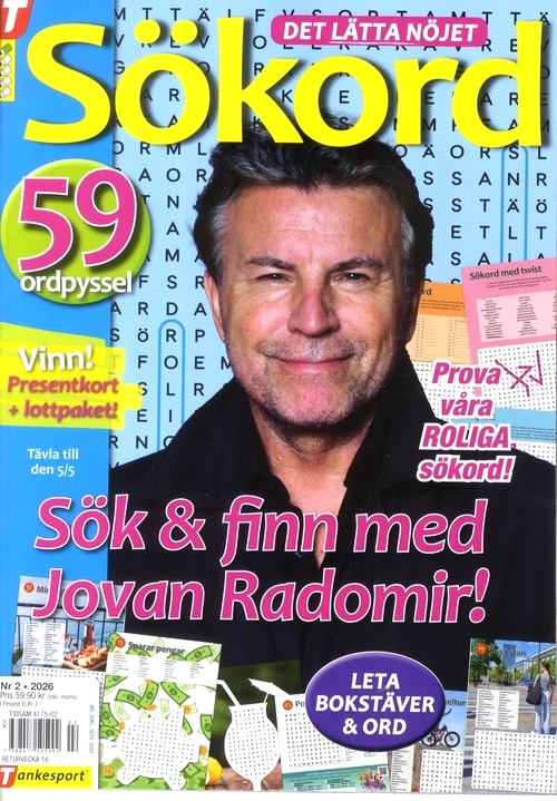 Om du väljer att prenumerera på Sökord får du en tidning varannan månad då den utkommer med 6 nr varje år. Tidningen har funnits sedan 2003 och är en storfavorit. Som chefredaktör finner vi Ulrika Falk. Börja prenumerera på Sökord och få 36 sidor fulla med sökord – just nu till kampanjpris hos oss på Tidningskungen.se!