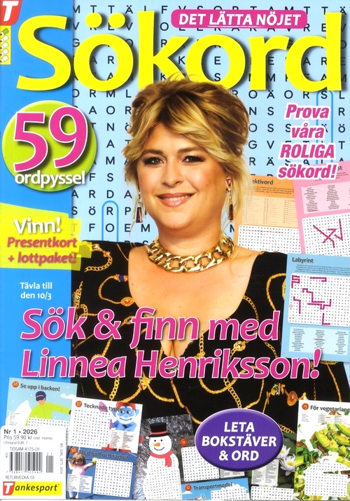 Om du väljer att prenumerera på Sökord får du en tidning varannan månad då den utkommer med 6 nr varje år. Tidningen har funnits sedan 2003 och är en storfavorit. Som chefredaktör finner vi Ulrika Falk. Börja prenumerera på Sökord och få 36 sidor fulla med sökord – just nu till kampanjpris hos oss på Tidningskungen.se!