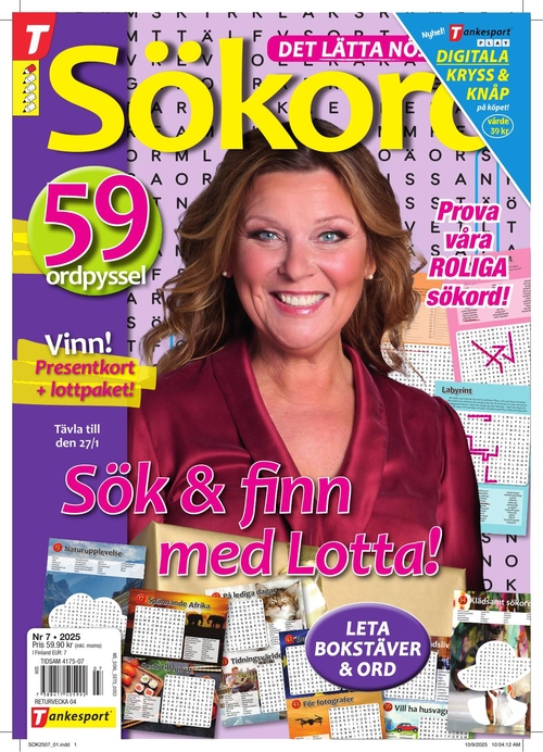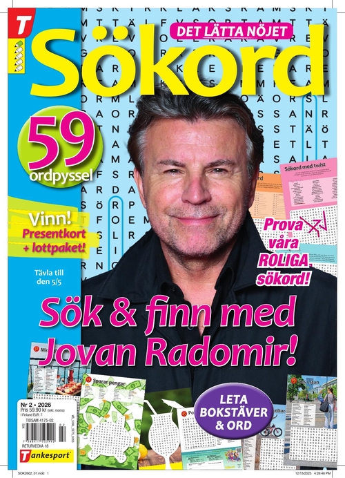 Om du väljer att prenumerera på Sökord får du en tidning varannan månad då den utkommer med 6 nr varje år. Tidningen har funnits sedan 2003 och är en storfavorit. Som chefredaktör finner vi Ulrika Falk. Börja prenumerera på Sökord och få 36 sidor fulla med sökord – just nu till kampanjpris hos oss på Tidningskungen.se!