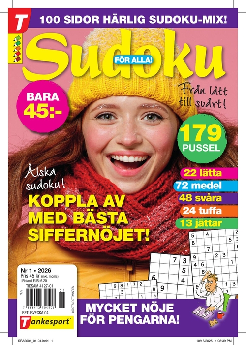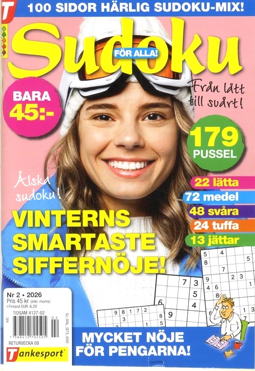 Hos oss på Tidningskungen kan vi erbjuda allt från prenumerationer till lösnummer på Sudoku för alla. Känner du någon som älskar Sudoku? Ta del av samma erbjudande och ge bort denna suduko tidning som en gåva.1290 nr0sudoku-for-alla-1-2026.jpg2026-01-02