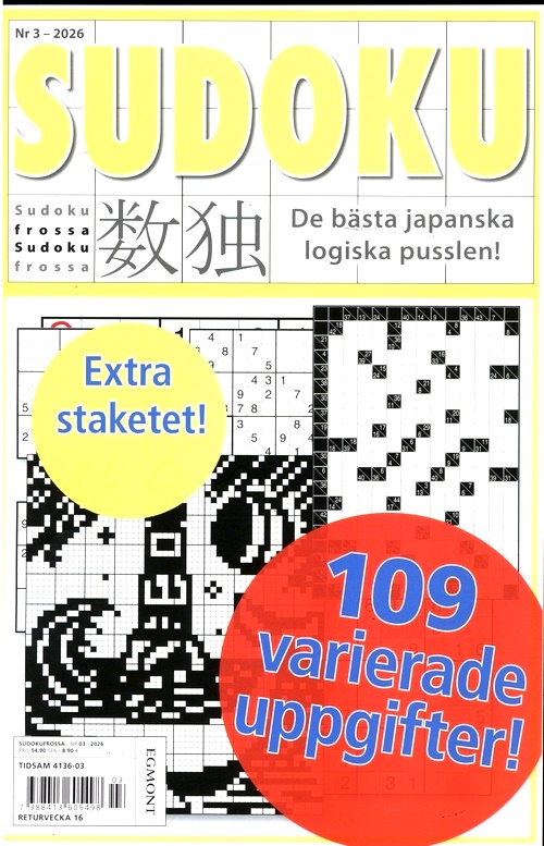 Sudoku för alla åldrar och i alla svårighetsgrader, lätt, medel, svår och expert, Samuraj- och diagonal-sudoku. Även figurlabyrinter, talkryss och andra japanska logiska pussel.