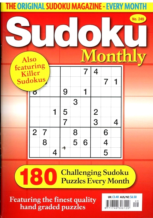 Sudoku Monthly (UK) är en tidning för dig som gillar att lösa sudoku. Det är en tidning du kan ta med dig överallt och njuta av när du har en ledig stund. Tidningen är också ett bra sätt att hålla hjärnan aktiv och frisk, och koppla av från stress och oro.