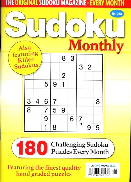 Sudoku Monthly (UK) är en tidning för dig som gillar att lösa sudoku. Det är en tidning du kan ta med dig överallt och njuta av när du har en ledig stund. Tidningen är också ett bra sätt att hålla hjärnan aktiv och frisk, och koppla av från stress och oro.