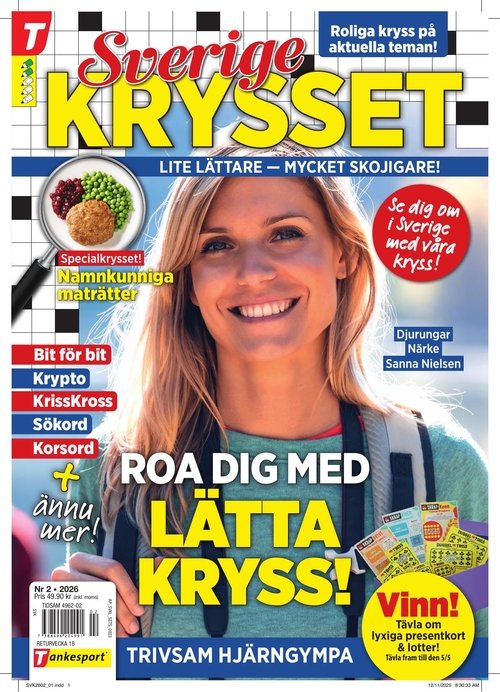 https://www.tidningskungen.se/korsord/sverigekrysset12596Sverigekrysset//bilder.tidningskungen.se/upl/thumb380x500/sverigekrysset-2-2026.jpg169SEKInStockKorsordKan man få för mycket av Sverigekrysset? Nej, det kan man inte! Genom att prenumerera på Sverigelrysset får du en tidning fylld till bredden med härliga kryss, kluriga korsord och fina bilder på allt mellan himmel och jord. Sverigekrysset är en tidning som bjuder på mer än bara hjärgympa! Få massor av inspiration av de goda recepten, var uppdaterad med det senaste inom kändisvärlden, roliga pyssel och få tips på fina ställen att besöka i Sverige. Tidningen Sverigekrysset är en tidning som har lite av varje, men framförallt med fokus på lätta och underhållande kryss att sätta tänderna i.