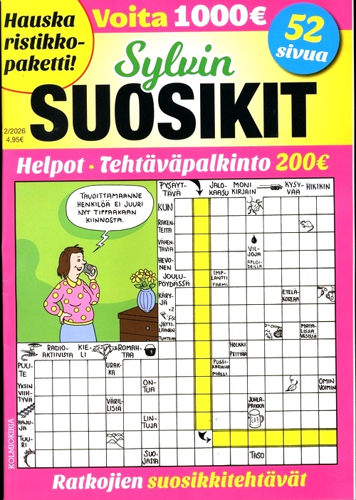 Sylvin Suosikit (FI) är tidningen för dig som älskar att lösa korsord och andra roliga uppgifter. Varje nummer innehåller över 100 sidor med olika korsord från Sylvin Helpot-tidningens äldre mästare samt nya, högkvalitativa korsord från fräscha författare. Dessutom finns det lagom mycket av de populäraste specialuppgifterna, som stavelsekorsord. I Sylvin Suosikit kombineras varm, avslappnad humor och avkopplande lätta korsord som har ett begripligt ordförråd.