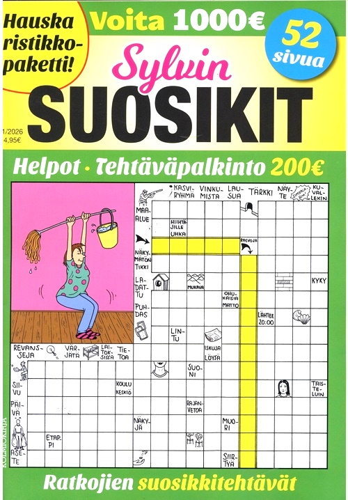 Sylvin Suosikit (FI) är tidningen för dig som älskar att lösa korsord och andra roliga uppgifter. Varje nummer innehåller över 100 sidor med olika korsord från Sylvin Helpot-tidningens äldre mästare samt nya, högkvalitativa korsord från fräscha författare. Dessutom finns det lagom mycket av de populäraste specialuppgifterna, som stavelsekorsord. I Sylvin Suosikit kombineras varm, avslappnad humor och avkopplande lätta korsord som har ett begripligt ordförråd.