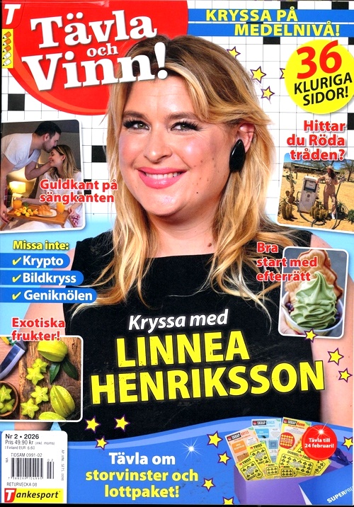 I tidningen Tävla & Vinn förekommer kryss, krypto, sökord, korsord och pussel i en härlig blandning vilket gör att du alltid kommer att hitta något som passar din smak och din dagsform. Beställ din prenumeration idag och se fram emot en helt ny tidning, varje månad, som du kan ha på ditt soffbord eller ta med när du ska ut och resa. 500 nr0tavla-och-vinn-1-2026.jpg442026-01-02