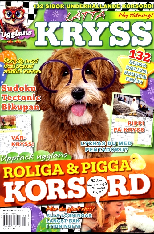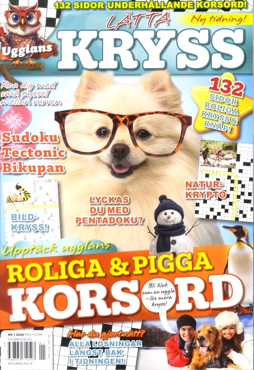 Vem vill inte vara klok som en Uggla? Nu kommer uppstickaren Ugglan med en ny välfylld korsordstidning på lätt nivå. Utöver kryss och korsord finns här även en mix av sudoku, tectonic och olika små pyssel som håller hjärnan pigg alla dagar.