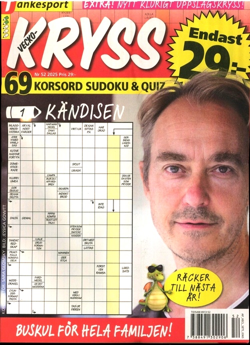 Sveriges billigaste krysstidning! 32 sidor med 69 kryss, pyssel, sudoku & quiz. Allting nyproducerat på lätt och medelsvår nivå. En underhållande krysstidning med buskul pyssel för hela familjen.