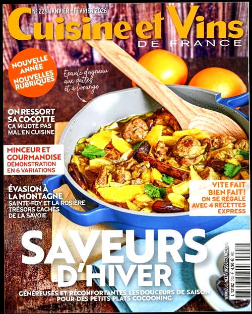 Cuisine & Vins De Fr. (FR) är en tidning för alla som älskar matlagning och vin. Få tillgång till den mest aktuella och inspirerande informationen om matlagning och vin. Tidningen är också ett perfekt sätt att hålla sig uppdaterad om de senaste nyheterna och trenderna inom mat- och vinvärlden.