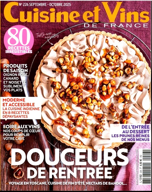 Tidningen ger dig traditionella och kreativa recept, som passar för alla tillfällen och smaker. Du får också lära dig av de stora kockarna och vinexperterna, som ger dig tips om de bästa mat- och vinkombinationerna. Tidningen tar dig på resa genom Frankrikes och världens regioner, där du upptäcker produkter, terroirer och matkulturer. Cuisine & Vins De Fr. (FR) är en tidning för att njuta och dela din passion för mat och vin.